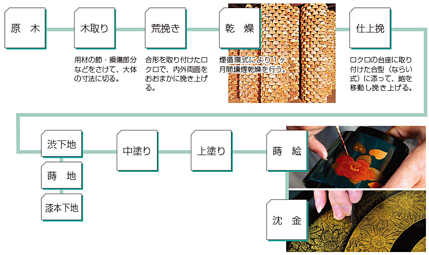 一般的な川連漆器の製造工程です。